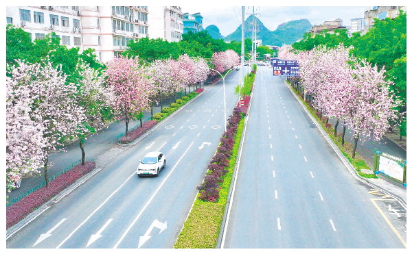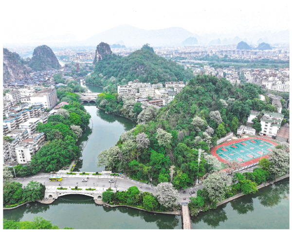 进入4月下旬,暮春时节的桂林城,街头、路边、江畔、山间,紫荆、苦楝等景观树和杂树都开启了鲜花怒放模式。无论在桂林城中穿行,还是在景区漫游,处处花团锦簇、花香沁心。