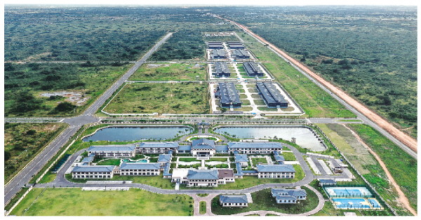 自投自建供电专线,6公里道路主干网,建筑面积1万平方米的综合办公楼和酒店服务设施,6栋各4500平方米的轻工厂房……历时5年建设,累计投入近7000万美元,合作区于2023年10月正式投入运营。