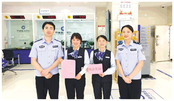 本报讯(通讯员蒋富成 彭程熠)“贵行职工在警银联动中高度贯彻为人民服务意识,严格落实‘三必问’原则,挽回群众损失,用心守护了人民资金安全。”近日,建行桂林分行下辖象山支行收到了一封来自桂林市公安局象山分局的表扬信,表彰支行员工及时报送客户交易行为可疑线索,成功帮助客户堵截40万元资金损失,阻止了一起重大电信网络诈骗案件的发生。