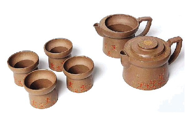 许煜红虽然留着一头利落短发,但江南女子独有的温婉娴静、端庄持重的气质却分毫不减。三十余年间,她将古典的传统追求与现代审美巧妙统一并融会贯通,艺术研究与创作水平得到广泛认同。她的作品,既有玲珑秀美的外观造型,又有着古拙质朴的内涵寓意;既有色彩与光亮的视觉大观,又有选题与立意的文化考量,往往给人以沉稳大气、典雅精巧、朴而不俗的美感。她的力作多次在全国大展中获奖,其中《缘》茶具在第八届全国陶瓷设计与创新评比中获金奖,被中国紫砂博物馆永久收藏;茶具《远古的呼唤》荣获2023广西工艺美术作品等次认定一等次;茶具《岁岁丰年》荣获第四届“百鹤杯”工艺美术设计创新大赛百鹤金鼎奖。
