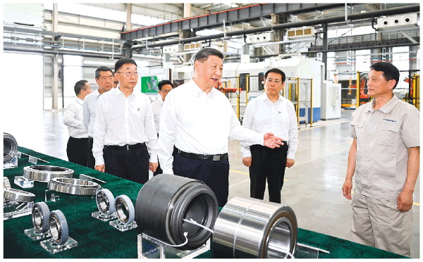 19日下午,习近平首先来到洛阳轴承集团股份有限公司考察。该公司前身为“一五”期间建成的洛阳轴承厂。在智能工厂,习近平了解企业发展历程,听取不同类型轴承产品用途和性能介绍,走近生产线察看生产流程。他对围拢过来的企业职工说,制造业是国民经济的重要支柱,推进中国式现代化必须保持制造业合理比重。现代制造业离不开科技赋能,要大力加强技术攻关,走自主创新的发展路子。他勉励职工发扬主人翁精神,在企业发展中奋发有为、多作贡献。