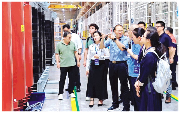 考察团来到桂林君泰福电气有限公司生产车间,详细了解桂林在电气设备等领域的产业实力与技术突破情况。