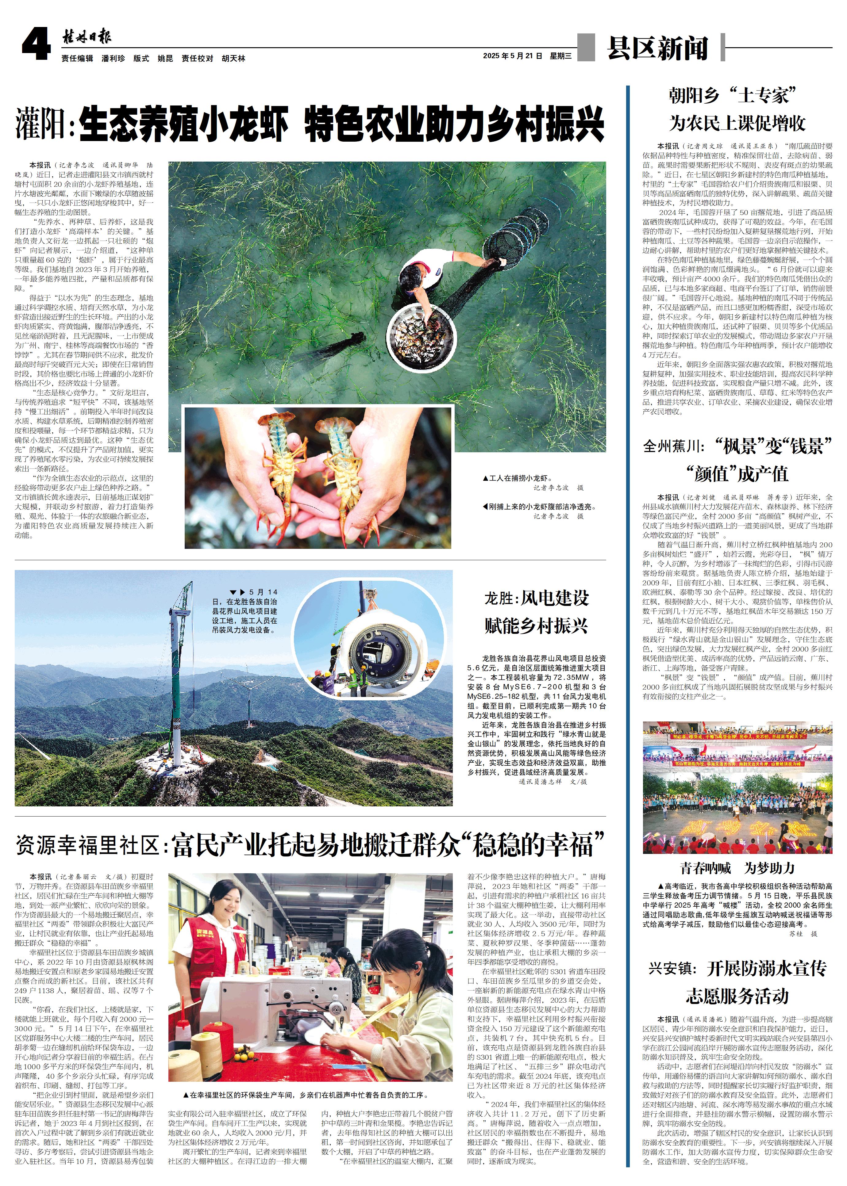 本报讯(记者李忠波 通讯员卿华 陆晓岚)近日,记者走进灌阳县文市镇西就村塘村屯面积20余亩的小龙虾养殖基地,连片水塘波光粼粼,水面下嫩绿的水草随波摇曳,一只只小龙虾正悠闲地穿梭其中,好一幅生态养殖的生动图景。