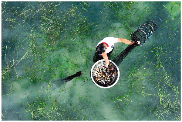 刚捕上来的小龙虾腹部洁净透亮。记者李忠波 摄
