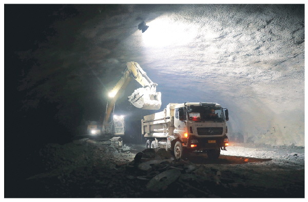 科技赋能的“地下攻坚” 在群山沟壑中施工,难度可想而知。中铁十四局集团项目施工生产负责人赵雪猛告诉记者,他们正以“逢山凿隧、遇壑筑坝”的劲头推进工程。自去年9月通风洞贯通以来,建设者运用智能凿岩台车与三维地质建模技术,精心组织施工,平稳安全完成施工任务。 目前主厂房及主变洞首层开挖已完成,二层预裂孔造孔正紧张推进,预计2026年4月实现整体支护。洞内施工精度堪称毫米级“雕刻”:厂房采用中部式开发方式,引水及尾水系统均采用一洞四机布置,57米垂直空间内每轮深挖误差不超过一厘米;每根锚杆植入时同步传输18项力学参数,智能监测系统实时守护工程安全。 “这是未来南方电网的‘能量心脏’,每个细节都容不得半点马虎。”赵雪猛说。