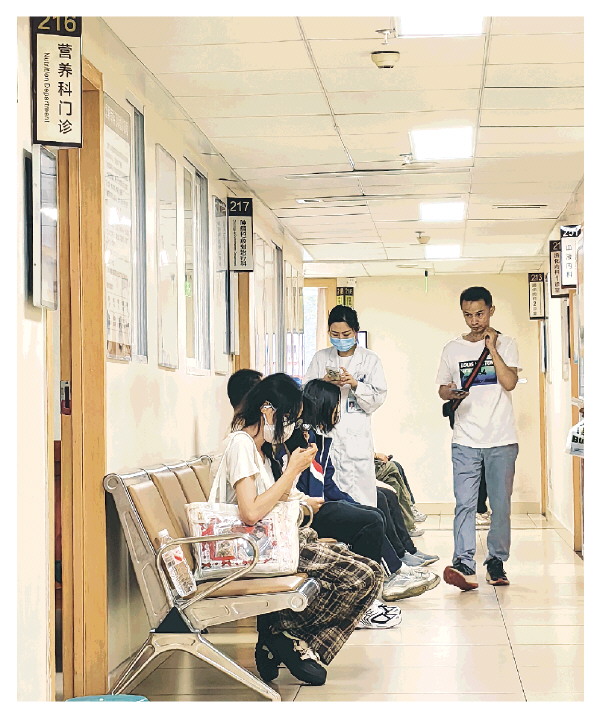 ▲在市人民医院营养科门诊外,多位年轻人正在排队候诊。 记者黄敏 摄