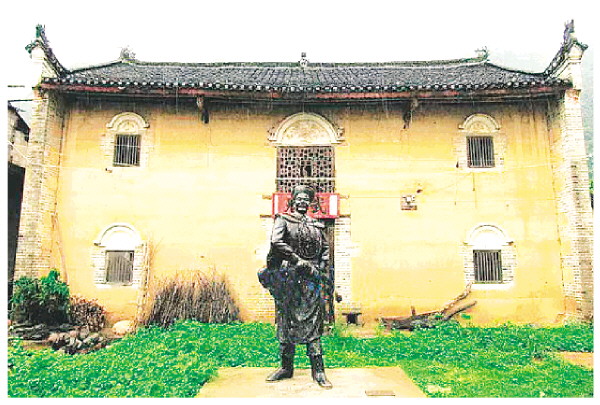 图③:村内的陈嘉塑像。