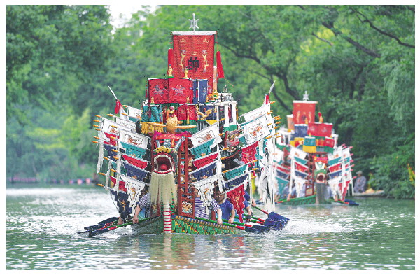 5月31日,村民在杭州西溪国家湿地公园的蒋村龙舟胜会上划龙舟。蒋村龙舟胜会于2011年被列入国家级非物质文化遗产名录。当日是端午节。