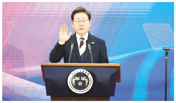 6月4日,在韩国首尔,李在明在韩国国会宣誓就职。新华社发