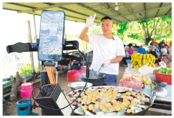 □本报记者何月 通讯员黄勇丹 刘迪 文/摄 “大家好,我是小廖锅,今天继续给村里老人免费煮桂林米粉。开饭!开饭!”直播镜头前,廖永辉精神抖擞,熟练地和不断涌入直播间的观众打招呼。在他身前,炖煮各类食材的大锅咕嘟作响,米粉一“冒”热,便连汤带肉盛进碗里,送与早已在一旁等候的老人。 廖永辉是从事乡村公益类直播的主播,每天清晨他都会在村里为老人免费煮早餐,今年是他公益直播的第二年,从无人问津到人气渐旺,从公益小白到暖心达人,从桂林城里的夜宵摊主到灵川乡村的公益主播,这位29岁的年轻人共送出了超过两万份米粉,用一碗碗热气腾腾的米粉,“冒”出了属于“95后”的公益温度,也“冒”出了农村留守老人陪伴问题的新解法。