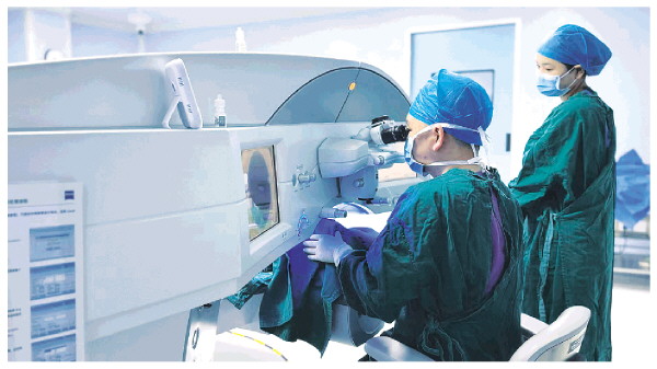 副院长、眼科主任温利辉在为患者进行全飞秒近视手术。