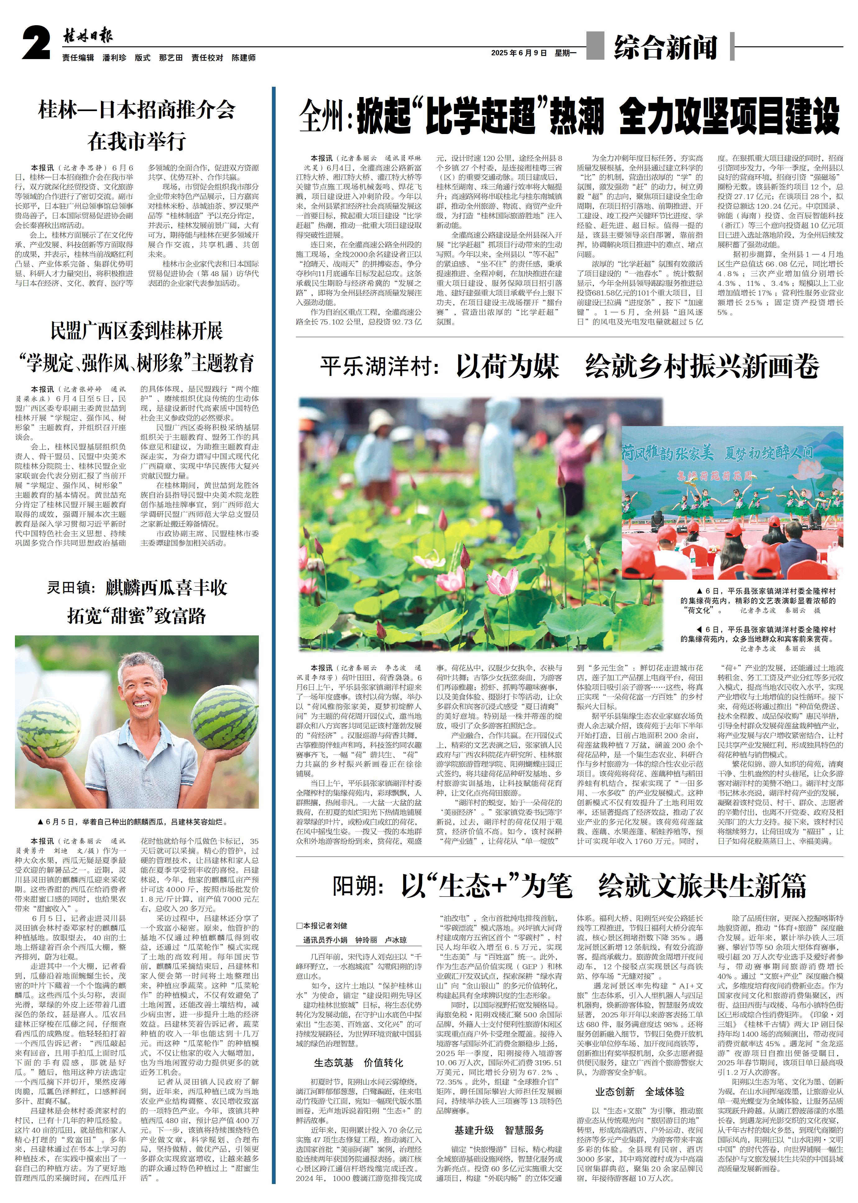 □本报记者刘健 通讯员乔小娟 钟玲丽 卢冰琼 几百年前,宋代诗人刘克庄以“千峰环野立,一水抱城流”勾勒阳朔的诗意山水。 如今,这片土地以“保护桂林山水”为使命,锚定“建设阳朔先导区 建功桂林世旅城”目标,将生态优势转化为发展动能,在守护山水底色中探索出“生态美、百姓富、文化兴”的可持续发展路径,为世界环境贡献中国县域的绿色治理智慧。