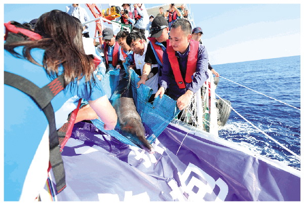 6月8日,救助人员将糙齿海豚“阳阳”放归大海。