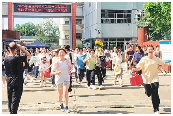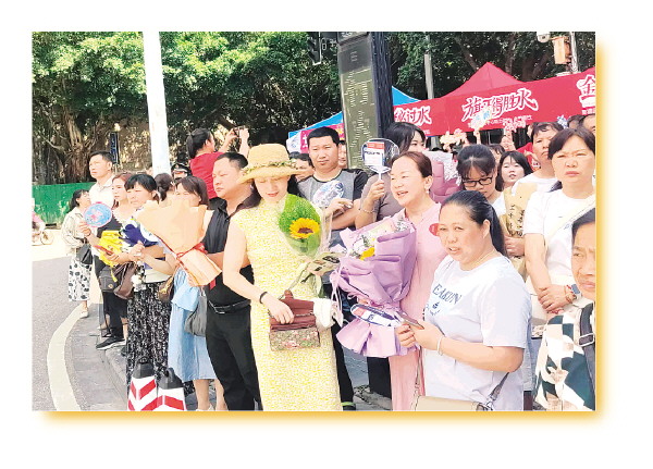9日中午12点多,年过七旬的黎阿姨手捧鲜花,在市田家炳中学考点外的人群中格外显眼。专程从临桂赶来的她难掩兴奋:“外孙女从小跟我长大,对我可依赖了。今天她高考结束,这么重要的日子我肯定得来!孩子完成了一件人生中的大事,考得好不好不重要,只要她能做喜欢的事就好。她还答应暑假带我去北京旅游呢!”说到这儿,黎阿姨笑得合不拢嘴。