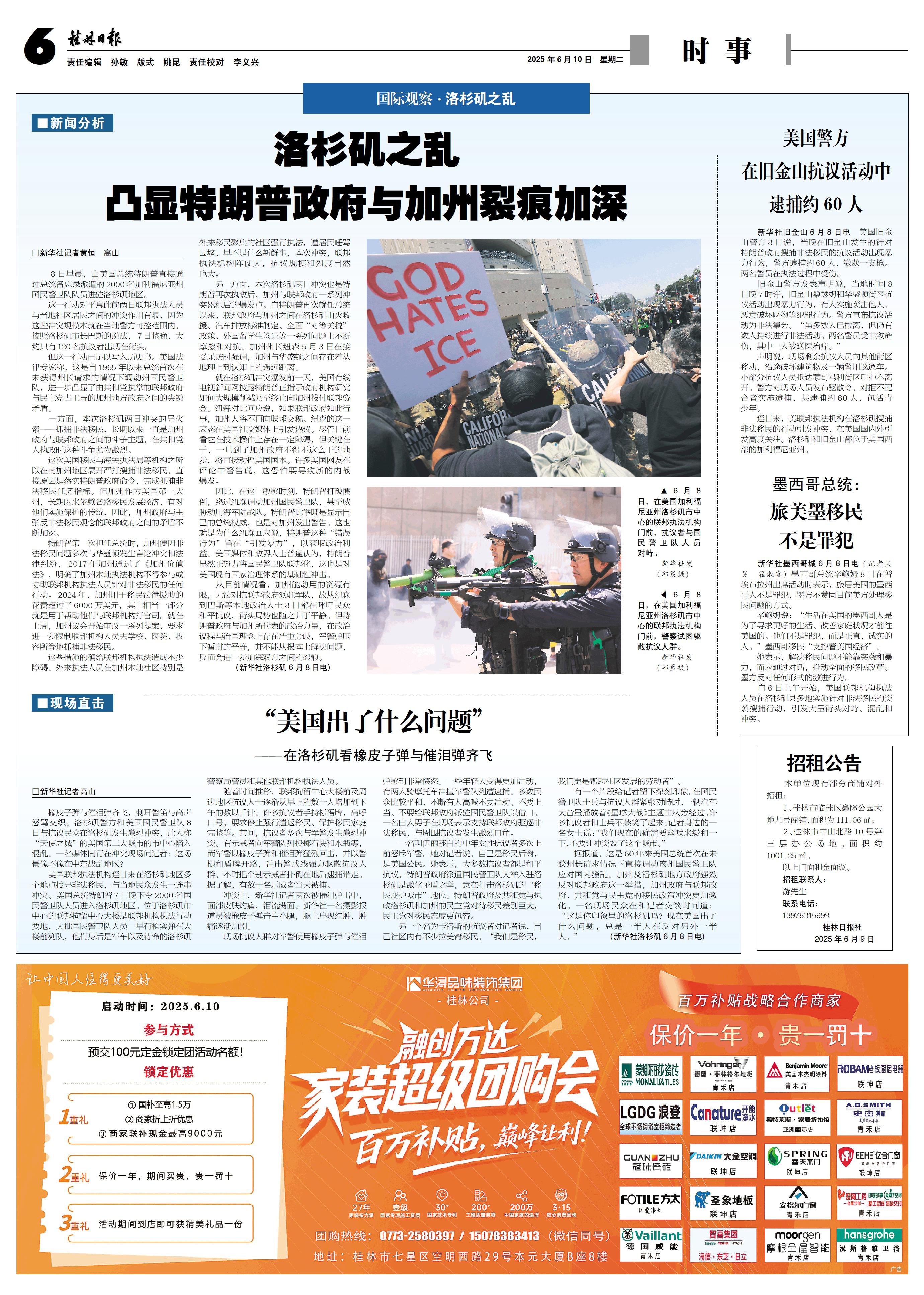 连日来,美联邦执法机构在洛杉矶搜捕非法移民的行动引发冲突,在美国国内外引发高度关注。洛杉矶和旧金山都位于美国西部的加利福尼亚州。