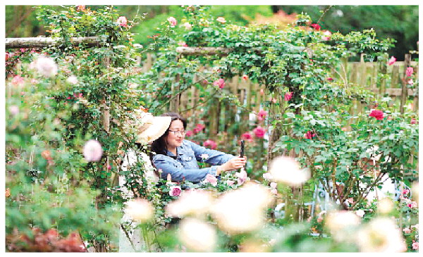 近年来,七星区朝阳乡孵化支持一批文艺小院发展,乡村旅游示范区建设初显成效。图为近日在哈尼花园内,市民游客在赏花拍照。 记者苏展 摄