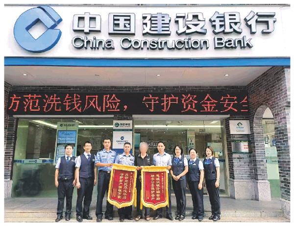 ▲建行桂林分行拦截价值百万涉诈黄金,获客户赠锦旗。 张芳 摄