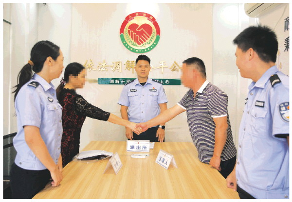 平乐县上关派出所民警调解邻里矛盾纠纷,让双方握手言和。全玲慧 摄