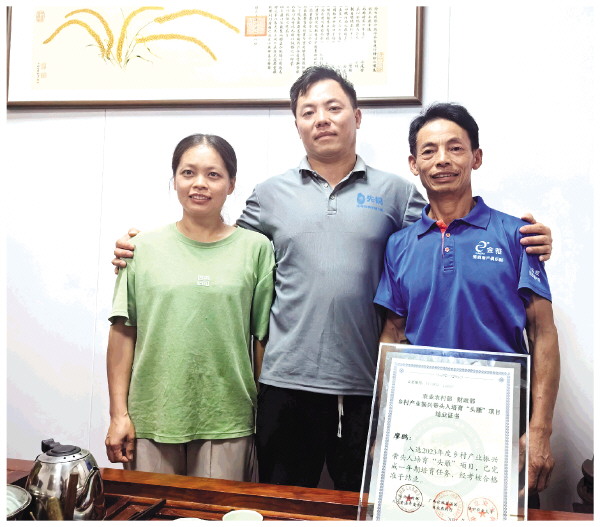 幸福有“稻”路 在种粮的路上,“父子兵”的配合,也在无形中传承着勤劳好家风。 据廖鹏介绍,父亲廖宏顺和母亲蒋三秀都是地道的农民,大半辈子都在跟土地打交道。从他记事起,父亲和母亲就在农田里忙碌,用牛犁田,用肩挑谷子等传统的耕作方式,硬是靠着勤劳养活了一大家子。事实上,父母也不希望他长大后种田,所以总是鼓励他和姐姐努力读书。廖鹏说,这几年他躬耕田园,父母的勤劳还有吃苦耐劳,让他深受影响。在家乡种粮这几年,他也遇到过很多困难,但是父母勤劳的秉性,给了他莫大的鼓励,也成为他心目中的榜样。 靠着勤劳,父子俩把粮食种得越来越好。2024年底,廖鹏算了算,当年他和父亲共同管护的640多亩水田,纯收入30多万元。而靠着过去2年多来的打拼,廖鹏不仅还清了债务,还略有盈余。 今年春季,廖鹏一家的种粮规模已扩大到740多亩。而今年,为了更好地种好粮食,廖鹏又决定跟着当地农技人员,推广和运用水稻合理密植技术。 “水稻种得太密,有些禾的采光就会受影响,病虫害还会增多,不能随便增加密度。”廖宏顺再次对儿子的新方法持怀疑态度。不过,最终他还是默许了。因为,过去数年来,他知道儿子经常去外面学习,而那些“新玩意”确实不错。 据全州县农业农村局种植业管理股股长蒋启斌介绍,增密增穗植是水稻单产提升的基础。按照老一辈的种植观念,一亩水田插秧不到1万株。而水稻增密增穗植技术,每亩早、晚稻会插秧1.8万至2.0万株,中稻会插1.5万至1.7万株。增密增穗是一种农业技术,旨在通过科学、合理增加单位面积内水稻的种植密度,从而提高水稻的产量,需要包括选用优良品种、精播种、育壮秧、适龄移栽、科学管理肥水、防灾减灾等一系列措施,以确保水稻的健康生长和高产。此外,植保无人机飞防作业的加入,病虫害防治问题,也将得以快速、高效解决。 在不断采用新技术、新设备种粮的同时,父子俩在发展农业方面,还有不少想法。廖鹏说,从2022年开始,他和父亲就利用冬闲田种植收籽油菜,一方面收割油菜籽、一方面培育绿肥,还能打造赏花经济,让农业与旅游有机结合起来。 在廖鹏家房屋的后面,是长年奔流不息的湘江支流栗水河。廖鹏和父亲早就规划好了,种好粮食的同时,利用家乡的地理优势打造一个以农业观光为主题的农家乐,跟乡亲们一起,拓宽增收路径。 “这对父子,勤劳、能干,有想法,还干劲足,叫人佩服。”廖宏新说,过去3年多来,他见证了廖宏顺、廖鹏父子俩种粮创业的全过程,对于这一家子勤劳的好家风,非常的认可和赞许。 在廖鹏家的书房,摆着两份沉甸甸的荣誉证书。一份是廖宏顺于2022年荣获的全广西“农业精英”荣誉牌匾,另一份则是廖鹏于今年1月荣获的由广西农业农村厅、华中农业大学等联合颁发的“乡村产业振兴带头人培育‘头雁’项目结业证书”。父子俩合影的背后,是一张画着沉甸甸的稻穗的画作。廖鹏说,他们家的幸福满是稻香,也将继续为“稻”而奋斗。