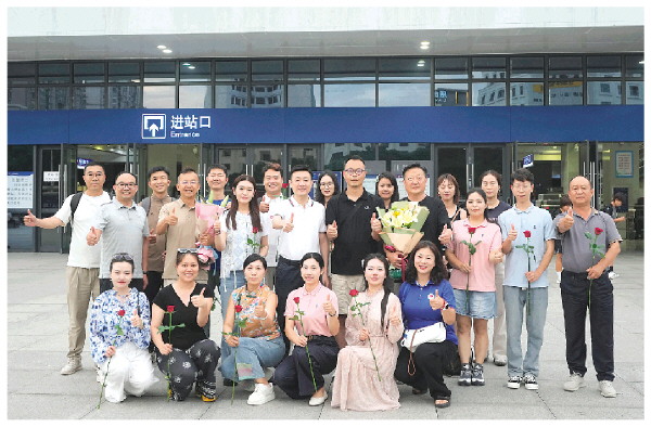6月15日,载誉归来的桂林导游参赛团队回到桂林受到热烈欢迎。 记者何平江 摄