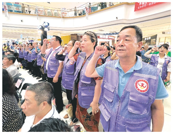 ▲“我志愿加入桂林市‘银龄行动’志愿者队伍,以桑榆之志践行初心,以银发之力奉献社会……”在银龄志愿者代表的带领下,全场志愿者举起右手,庄严宣誓。