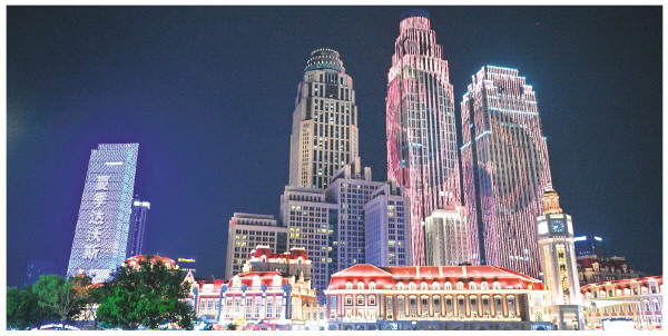 世界经济论坛第十六届新领军者年会(又称“夏季达沃斯论坛”)即将在天津开幕。夜色下的天津灯光璀璨,多座地标性建筑点亮楼体灯光,流光溢彩迎接中外宾朋。 新华社记者孙凡越 摄