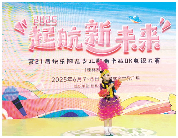 近日,由桂林少儿艺术学会主办的2025“起航新未来”第21届快乐阳光少儿歌曲卡拉ok电视大赛(桂林赛区)比赛在七星区客世界拉开帷幕。近百位“小小百灵鸟”同台竞技,以歌会友,展现出新时代少年儿童蓬勃向上的风貌。 记者韦莎妮娜 摄