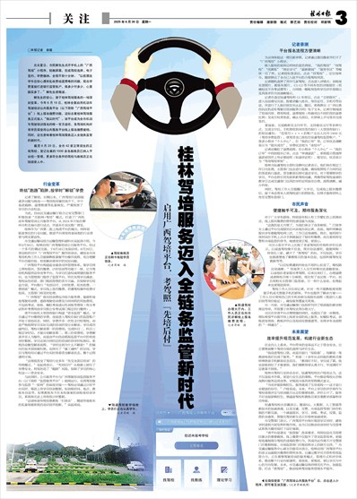 恒鑫驾校校长苏鹏表示,随着5G、大数据、人工智能等新技术的加速渗透,以及交通、交警、市场监管等部门协作机制的不断完善,一个涵盖报名、学习、训练、考试、反馈、监管的全链条、智能化驾培新生态正在桂林加速成型。