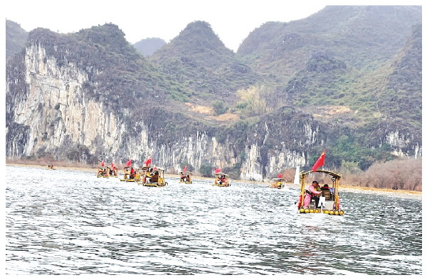 据雁山区人社局工作人员介绍,近年来,雁山区不断创新服务载体,整合草坪回族乡150多艘竹筏,打造“水上就业帮扶车间”,开发了票务、安保、保洁、筏工等50多个工作岗位,吸纳就业200余人次,其中脱贫人口50余人次。此外,当地还组织开展景区讲解、手机短视频拍摄与制作、电工等各类培训5期,培训111人次,其中脱贫劳动力培训17人次,发放技能培训补贴11.5万元,让村民们在家门口吃上“生态旅游饭”。