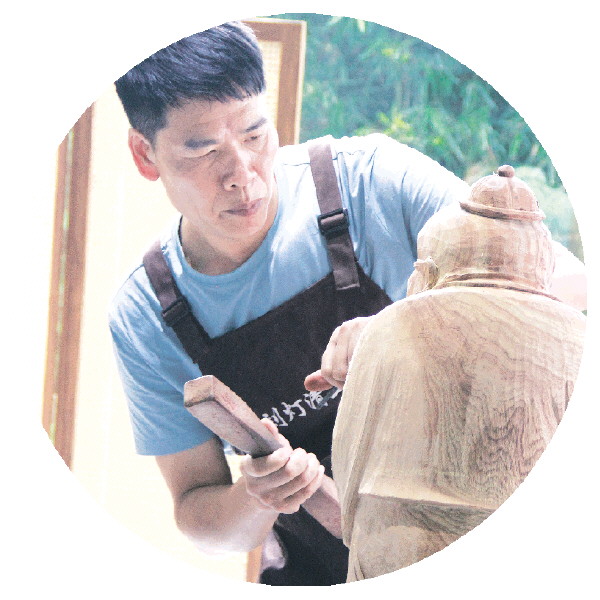 ◥中国工艺美术大师、高级工艺美术师、桂林根雕市级非遗代表性传承人张利梓在日常创作中。