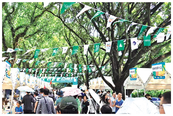 将山水阅读市集放在有“最美林荫路”之称的滨江路举行,树影之间尽显桂林浓浓“文艺范”。“我每年都来图书市集,这次看到了很多有意思的新书,还看到了很多新的桂林文创,很有意思。”市民周女士一边说着,一边展示自己刚在市集上购买的象鼻山主题文创产品。