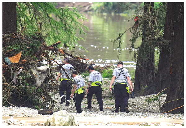 7月5日,在美国得克萨斯州亨特,人们在瓜达卢普河沿岸搜救。 新华社/美联