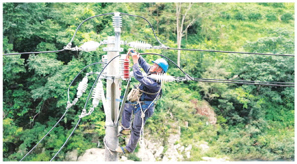 ◤连日来,龙胜各族自治县以迎峰度夏和隐患排查为抓手,组织电力相关部门,通过增强供电服务保障,强化重要站线、重载设备特巡特护,加强主动巡检等方式,提升应急处置能力,守牢安全生产生命线和民生用电底线。图为电力工作人员对线路进行精细维护。