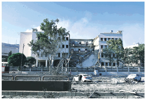 这是7月16日在叙利亚首都大马士革拍摄的在以色列空袭中受损的叙“总参谋部”大楼。 新华社发(阿马尔·萨法尔贾拉尼摄)
