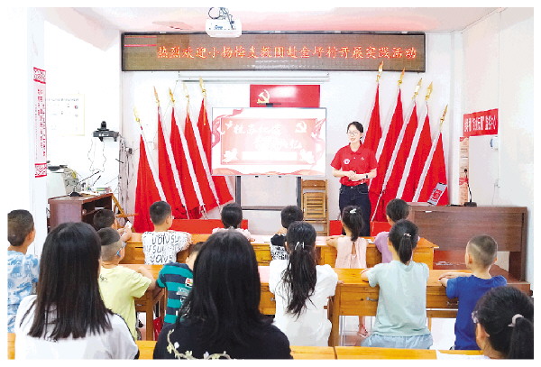 本报讯(通讯员秦榛 黄同凯 记者张苑)“小朋友们,你们知道咱们龙胜当年有哪些红军故事吗?”“这张年画里的门神和咱们侗族的傩面有什么相通之处?”……近日,在龙胜各族自治县乐江镇金坪村,孩子们期盼的暑期特色课堂如期开课。来自苏州科技大学文学院小杨梅支教团为孩子们带来的“桂苏红途,青春共忆”和“吴韵桂风,一团和气”主题活动,让山村的孩子们眼界大开。