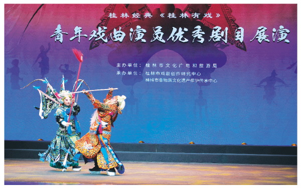 ◤桂戏传薪火,青春绽芳华。7月23日至25日,桂林经典《桂林有戏》青年戏曲演员优秀剧目展演在广西省立艺术馆上演,带来桂剧《贵妃醉酒》《对花枪》《黛玉葬花》、彩调《刘三姐·戏媒》《地保贪财》《打铜锣》等经典作品。24日,记者在演出现场看到,台下座无虚席,还有不少小“戏迷”前来捧场。台上青年戏曲演员精彩的表演,赢得观众阵阵叫好声。图为桂剧《对花枪》剧照。