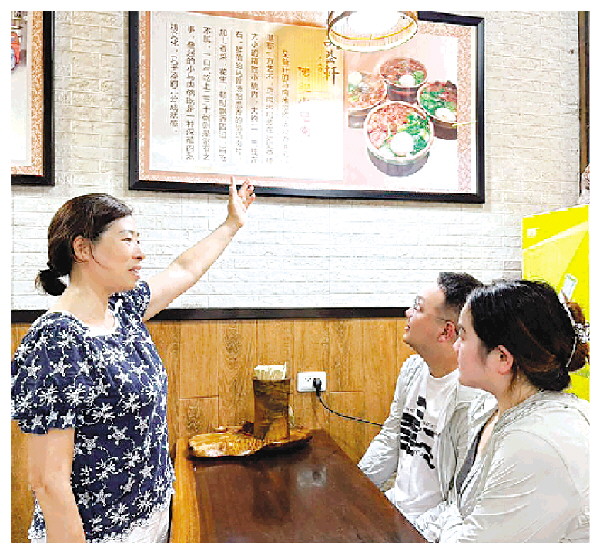 图④:苏红玲向湖北游客介绍马肉米粉的故事。