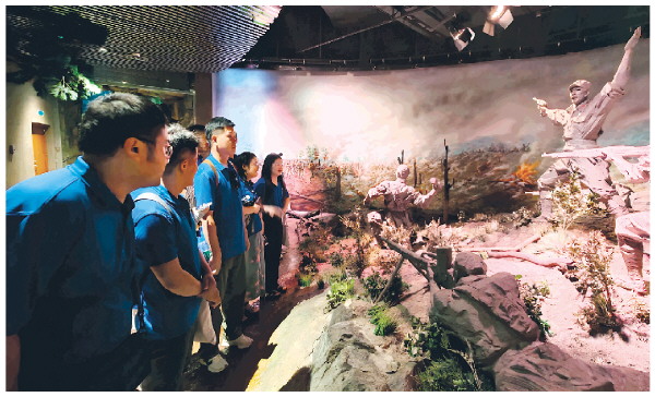 7月28日,参加广西艺术基金2025年度艺术人才培训资助项目“数智创新赋能湘江战役题材红色雕塑创作人才培训”的学员们在位于兴安县的红军长征突破湘江烈士纪念碑园参观学习。