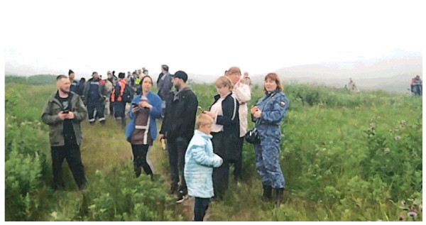 7月30日,俄罗斯北库里尔斯克居民在高处躲避海啸。 新华社发(萨哈林州州长电报频道供图)