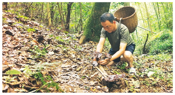 “创新的竹片捆扎基质种植法,巧妙模仿了灵芝在野外腐朽竹木上生长的自然习性,相比传统袋料或椴木,竹片这种原料更易得、成本更低廉。竹片富含纤维素、半纤维素,更是灵芝的天然‘粮仓’。”刘其强介绍,新技术培育出的灵芝朵形饱满,多糖和三萜含量均高于市场同类产品,一经上市便被药材商“抢订”。一年基质养地后,2024年保护区正式规模投产,经测产,平均亩产鲜灵芝150公斤,折合亩产值1.5万元。