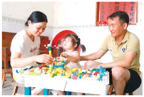 陈家双和妻子唐小艳陪女儿一起玩耍。 记者刘菁 摄
