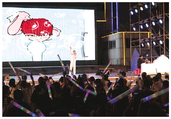 “桂林歌圩”夜间文艺焕新音乐会上,歌手孔子鸣边唱边与台下歌迷热情互动。 记者韦莎妮娜 摄