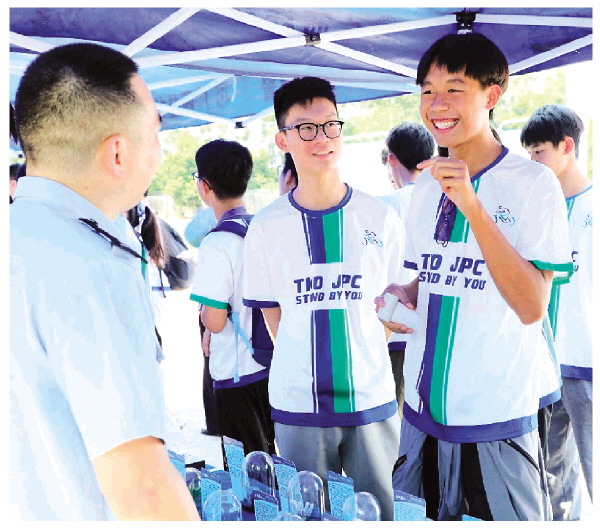 □本报记者 陈静 “桂林阿Sir好犀利!”日前,在桂林市人民警察训练学校的操场上,不时爆发出阵阵用粤语发出的欢呼声。香港警务处将军澳警区少年警讯参访团的44名青少年,被场中央精彩的特警战术表演迷住了。盛夏的阳光炙烤着训练场,却丝毫阻挡不了两地警民交流的热情。 随着一声令下,六名特警队员如离弦之箭冲向“歹徒”,盾牌撞击声、脚步声、口令声交织在一起。“哗!”当特警一个漂亮的过肩摔制服“歹徒”时,香港少年们不约而同站起身,掌声经久不息。来自将军澳中学的李同学激动地说:“比TVB剧里看到的还要精彩!” 在装备展示区,防暴突击车旁围满了好奇的青少年。“这辆车可以抵御汽油弹攻击。”特警队员拍着厚重的车门介绍道。15岁的张同学戴上防暴头盔,对着同伴的镜头比出胜利手势:“重到脖子都酸了,阿Sir们真不容易!” “砰!砰!”射击体验区传来清脆的橡皮弹响声。在教官一对一的指导下,少年们轮流体验防暴枪射击。“后坐力比想象中大多了!”打中靶心的陈同学兴奋地跳了起来,引得同伴们纷纷要求“再来一次”。 操场另一端,三辆警用摩托车正进行蛇形绕桩表演。引擎轰鸣中,骑手们以近乎倾倒的姿势完成高难度转弯,车轮与地面摩擦激起阵阵白烟。“太酷了!”少年们举着手机追拍,生怕错过精彩瞬间。 突然,一阵犬吠声吸引了所有人的注意。只见一头德国牧羊犬如闪电般冲出,准确找到藏在行李箱中的“毒品”,随后又一个飞跃咬住“歹徒”的手臂。“好聪明的狗狗!”少女们忍不住上前抚摸警犬,训导员笑着提醒:“它工作起来可是很凶的哦。” 科技展示区同样热闹非凡。当警用机器人灵巧地完成穿越障碍、抓取危险物等动作时,人群中不断发出“哇”的惊叹。机器狗的后空翻表演更是将气氛推向高潮,少年们围着工程师追问技术细节,有的已经开始畅想“未来警队”的模样。 “这是冰毒,吸食后会让人产生幻觉。”禁毒宣传台前,民警拿着仿真毒品模型详细讲解。看到吸毒前后的人体器官对比图,少年们露出震惊的表情。“原来毒品这么可怕,回去要告诉同学绝对不能碰。”王同学认真地在笔记本上记下识别要点。 反诈宣传则通过情景剧生动展开。“阿婆,您中奖的信息是假的!”民警扮演的诈骗分子惟妙惟肖,逗得大家哈哈大笑,却在潜移默化中记住了防骗口诀。来自香港的带队警官感叹:“这种寓教于乐的方式值得我们借鉴。” 夕阳西下,活动接近尾声。少年们依依不舍地与桂林警察合影,有的还交换了联系方式。带队老师表示,这次参访让香港青少年直观感受到内地警务工作的现代化发展程度,也加深了对内地警察的了解和敬佩之情。 桂林市公安局相关负责人表示,此次活动是两地警方深化交流合作的新起点。未来将继续开展形式多样的互动交流,让更多香港青少年了解内地发展,增强认同感。 临别时,香港少年们用新学的桂林话喊道:“警察叔叔辛苦了!”清脆的童声在训练场上空回荡,为这场跨越山海的警营对话画上圆满的句号。