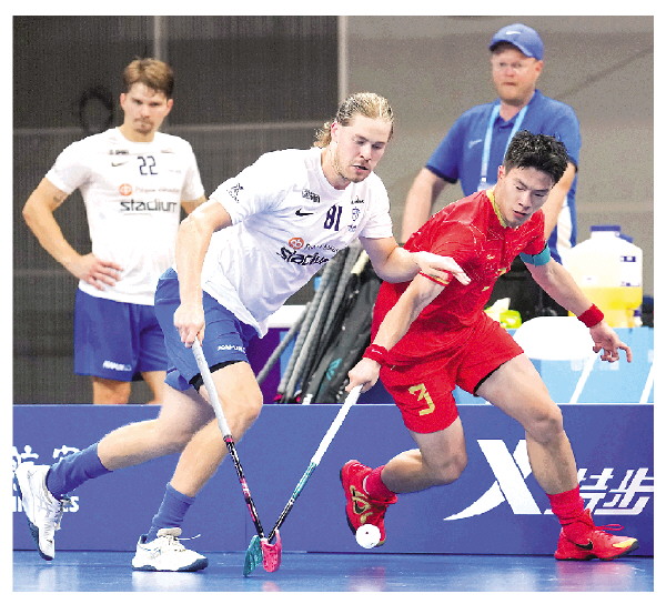 当日,在成都世运会软式曲棍球男子B组预赛中,中国队0比42不敌芬兰队。新华社记者李旭伦 摄