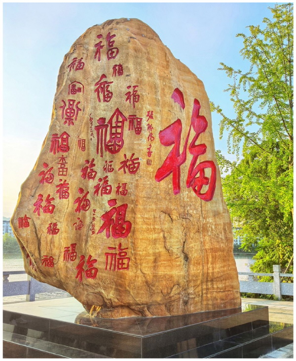 “福”是诸事吉祥幸福的总称,是中国民间传统的美好寓意,为广大人民所喜爱。政府为了将“福”做成永福的标识,举办了“状元故里 魅力永福”全国书法大赛,入选100件作品建设一个“百福广场”,把书法与福寿文化紧密融合,挖掘弘扬本土文化,宣传推介福寿文化,让永福福寿文化走向全国、推向世界。同时,还开展“游百村·接百福”活动,99个村,每一个村送一个“福”字,并镌刻在村口,加上刻在凤山的武状元李珙掌书的“福”,构成永福的“百福”,为永福的未来美好发展祈福。我们来到永福镇渔洞村大坪子屯,“乡村是没有围墙的博物馆”是村口的一幅标语,这与我提出的建设桂林“地标博物馆”一脉相承,这里有历史、文化、人物等,诉说看她发生的故事、变化……