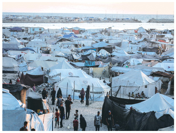 这是8月18日在加沙城拍摄的流离失所的巴勒斯坦人居住的帐篷。