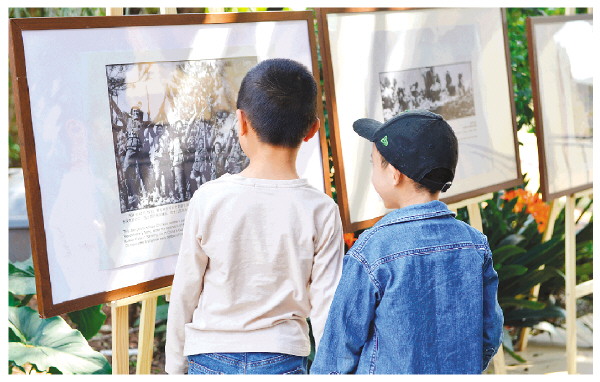 “孩子们,今天我们齐聚于此,观看纪念中国人民抗日战争暨世界反法西斯战争胜利80周年图片展。”韩芳说。
