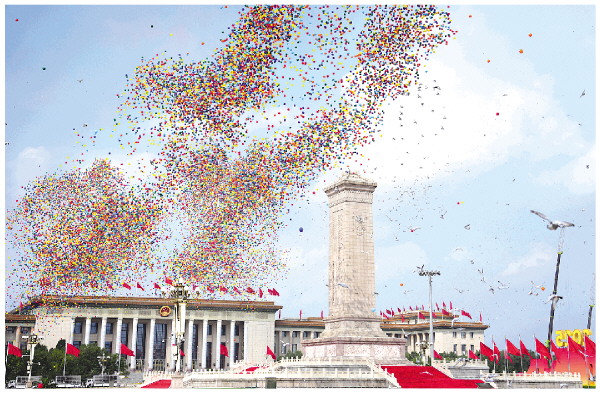 (四) 8万羽和平鸽振翅飞翔,8万只气球腾空而起,飞过天安门城楼,飞越人民英雄纪念碑,飞向更高更远的蓝天。 “五星红旗迎风飘扬,胜利歌声多么响亮……” 全场齐声高唱《歌唱祖国》,掌声、欢呼声在广场回荡,纪念大会圆满结束。 人们挥舞着手中的五星红旗,致敬先辈,礼赞时代,憧憬未来。 中国的昨天已经写在人类的史册上,中国的今天正在亿万人民手中创造,中国的明天必将更加美好。 ——前进道路上,保持定力、坚定信心,集中精力办好自己的事。 昭昭前事,惕惕后人。当今世界并不太平,威胁从没走远。 “历史告诉我们落后就要挨打。有实力、能打赢,才能遏制战争。”北京航空航天大学无人系统研究院院长董希旺说,要加快前沿技术攻关,以自主研发先进装备坚定守护国家安全。 不论过去、现在和将来,中国要发展,最终要靠自己。 今年,“十四五”规划收官,即将召开的党的二十届四中全会将研究关于制定国民经济和社会发展第十五个五年规划的建议。 “不管外部环境如何变化,都要心无旁骛加快发展。独龙族整族脱贫后,日子越过越好。我们要坚持自力更生、接续奋斗,在实现共同富裕的道路上也不掉队。”云南观礼代表高德荣说。 ——前进道路上,敢于斗争、善于创造,锲而不舍为实现复兴梦想而奋斗。 观礼后,全国劳动模范张霁明心绪难平:“走过峥嵘岁月,我们更理解肩负的历史使命。亿万颗心要紧紧凝聚在一起,奏响奋斗强音。” 中华民族是不畏强暴、自立自强的伟大民族,经历血与火的洗礼,更能汲取前行的智慧和力量。 “抗战是两岸共同的家国记忆。”受邀观礼的台胞吕礼诗说,台湾同胞的抗日斗争是全民族抗战的重要组成部分,我们始终与祖国同呼吸、共命运。强起来的中国,将为世界和平与发展作出更大贡献。 ——前进道路上,传承精神、继往开来,不断夺取新的伟大胜利。 歌唱着,欢呼着,天安门广场上人们豪情满怀。 人群中,左权将军的外孙沙峰将手机高高举起。持续亮起的屏幕上,是左权与夫人、女儿一家三口唯一的合影。“我想告诉外公,这盛世如您所愿!” “观礼,就是一次精神洗礼。”北京人民艺术剧院院长冯远征语气坚定,“为人民、为时代鼓与呼,我们要奉献更多彰显伟大精神的优秀作品。” 亲历盛大纪念活动,孟加拉国《新时代报》记者坦齐勒·拉赫曼难掩激动:“唯有全世界人民携手并肩,才能让和平永续。” 对历史的最好纪念,就是创造新的历史。 向着中华民族伟大复兴的光辉彼岸,前进! 向着世界和平与发展的美好愿景,前进! 向着构建人类命运共同体的光明未来,前进! (新华社北京9月4日电)