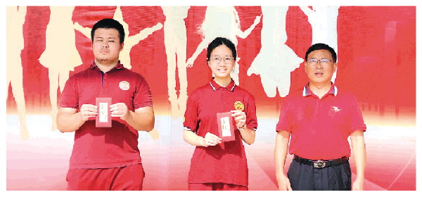 刘新来校长为特等奖获得者颁发奖学金。(学校供图)
