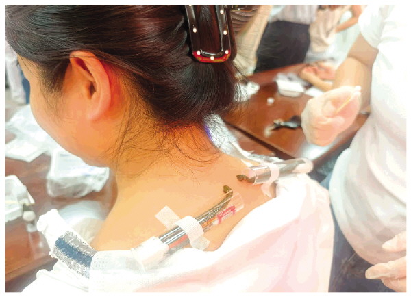 现场演示操作水蛭疗法。(图片由桂林市中西医结合医院提供)